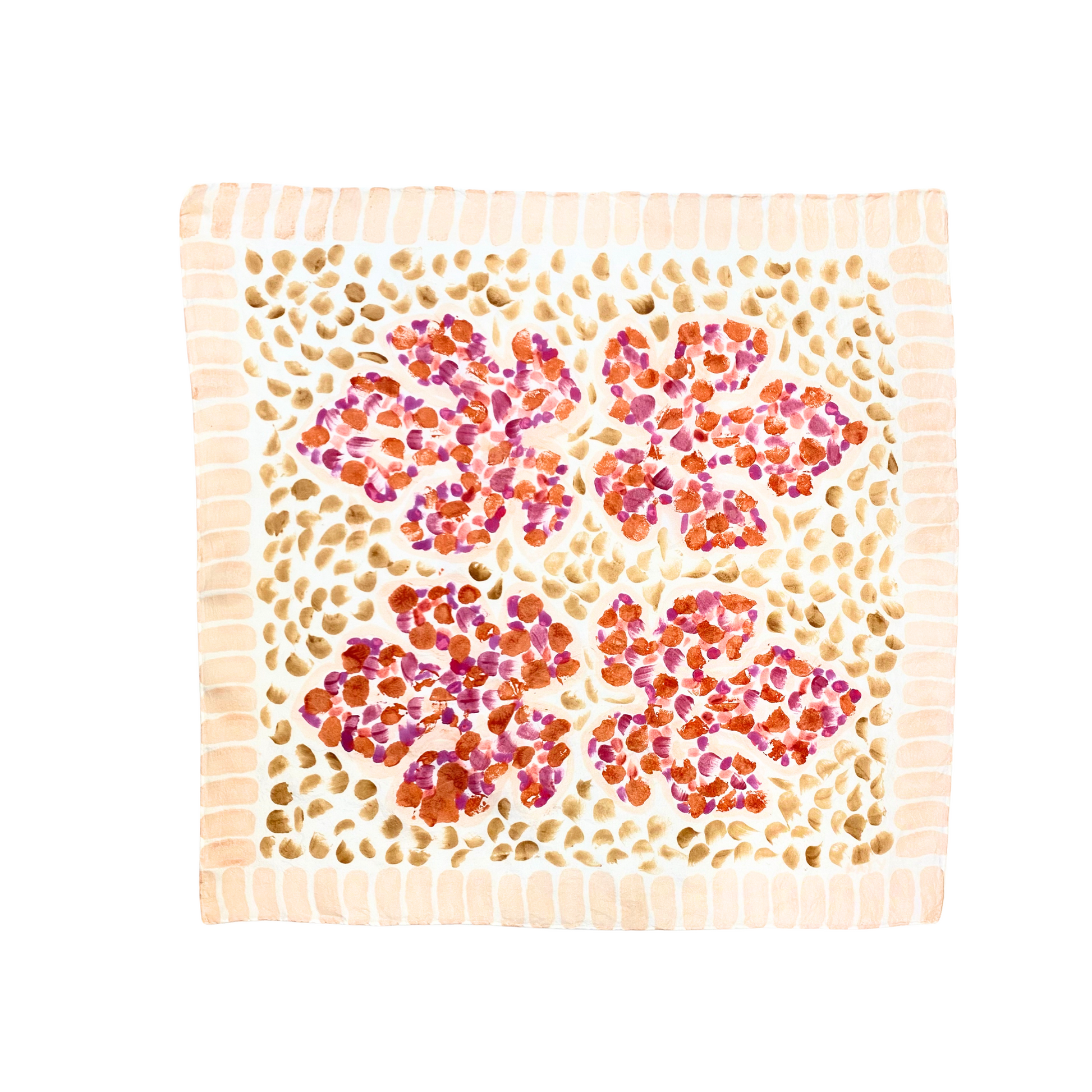 Printed/painted with madder, cochineal, brazilwood, and cutch