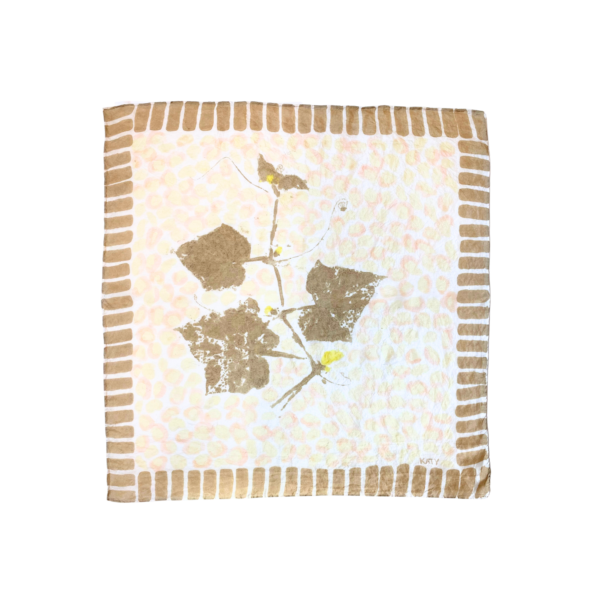 Printed/painted in cutch, buckthorn, madder, weld, and pomegranate